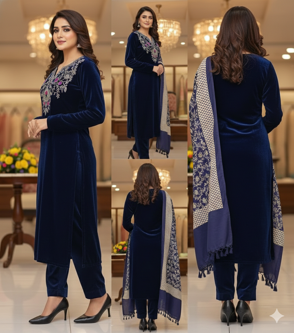 Beautiful Extra Soft Simple Straight Suit 3pcs (Cord Set)