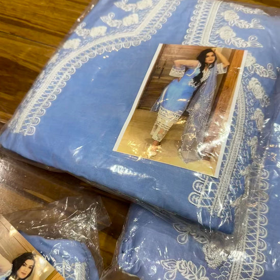 This Boutique Style Unstitched Suit is crafted with soft Chinnon fabric, intricately detailed with beautiful thread work on sleeves as well as the pants . Its stylish dupatta features Allover flower embroidery, adding a touch of elegance. Experience luxurious comfort and exquisite design with this suit.