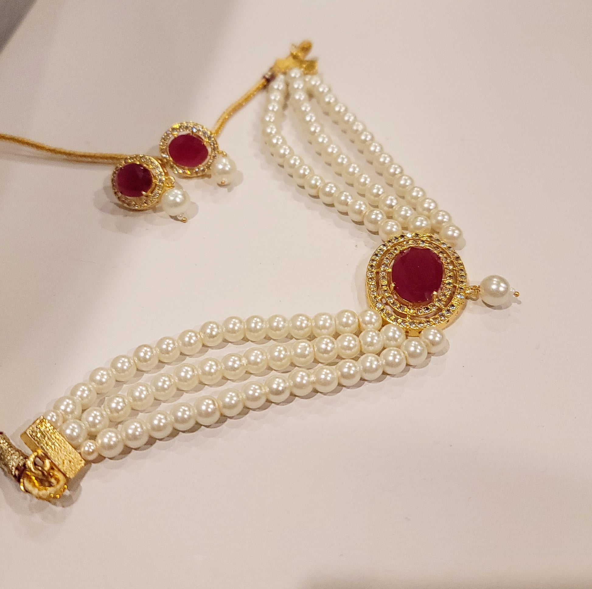 Beautiful and very luxurious choker set with Ruby stone & AD. Very fine quality Pearls for the comfort of your neck.