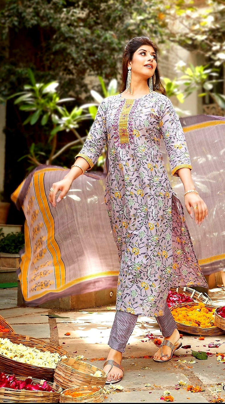 Designer 3pcs Kurta Set 100% Cotton