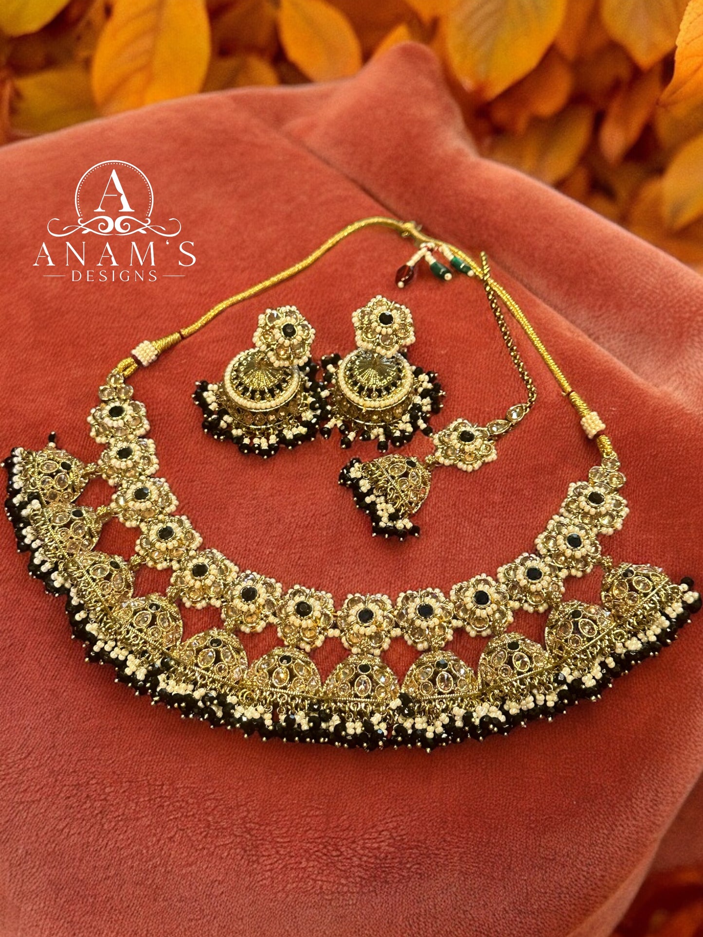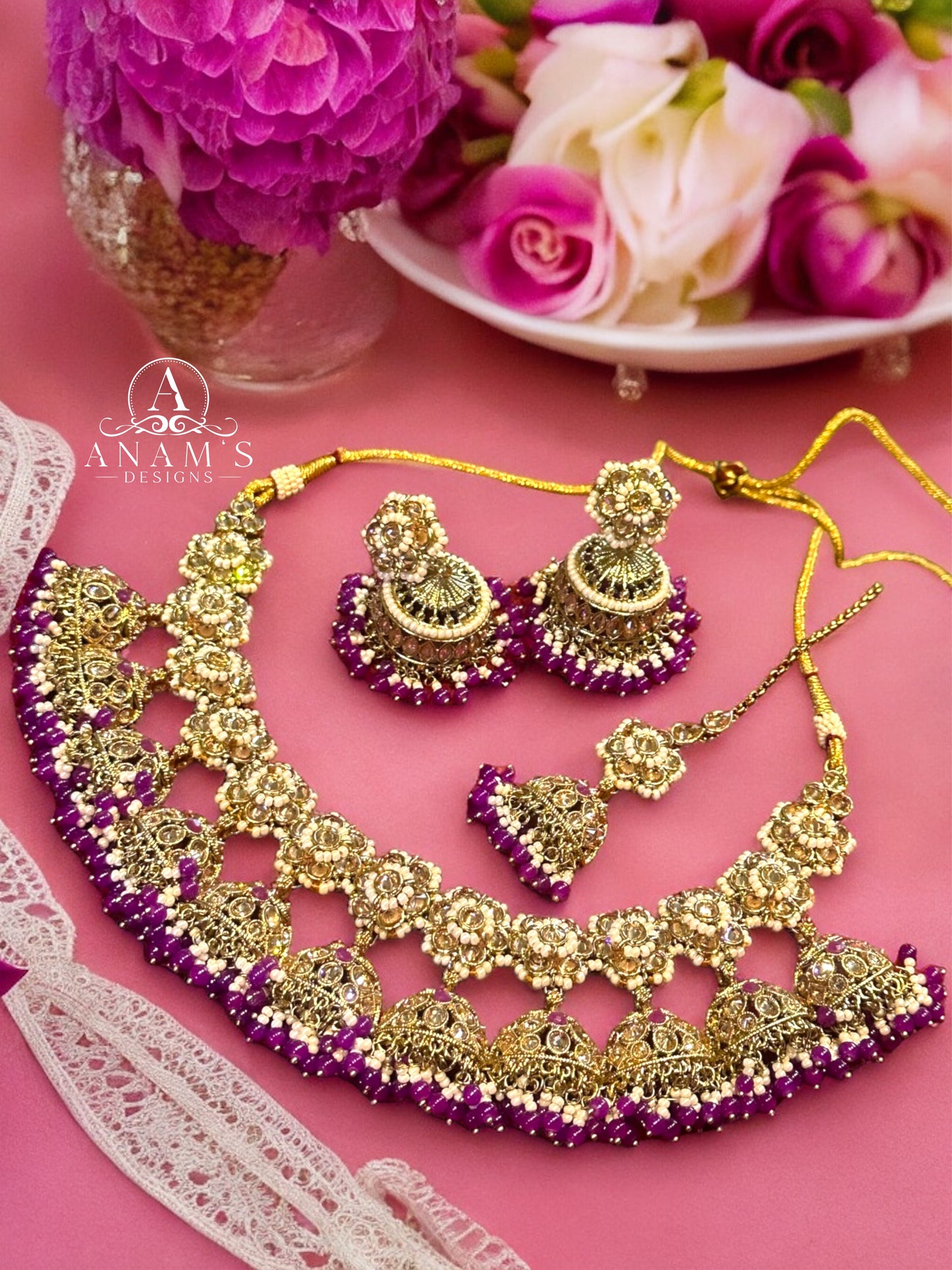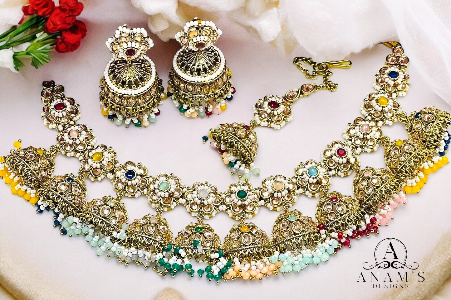 Stylish Jhumki Concept High Quality Choker Set In Polki With Hydro Beads. Very Lightweight & Superior Quality.