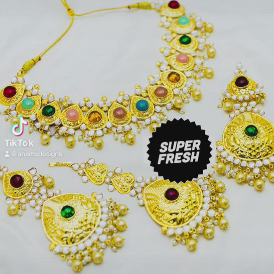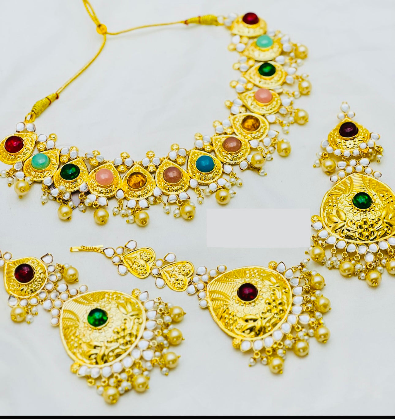 Gold-Plated Traditional Design & High-Quality Patra Set With Long And Very Lightweight Earrings Tikka.