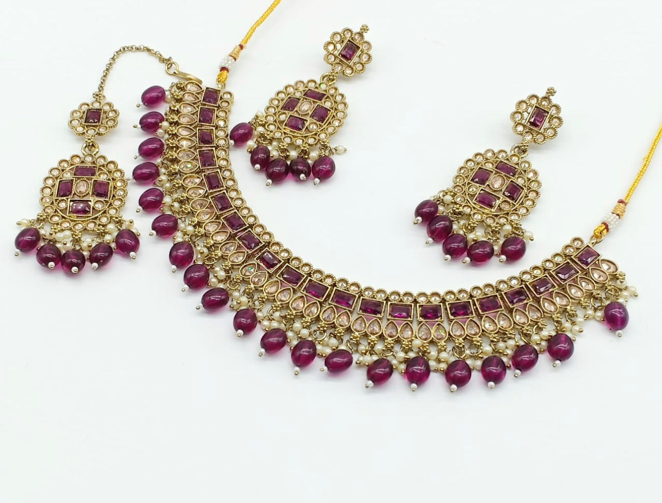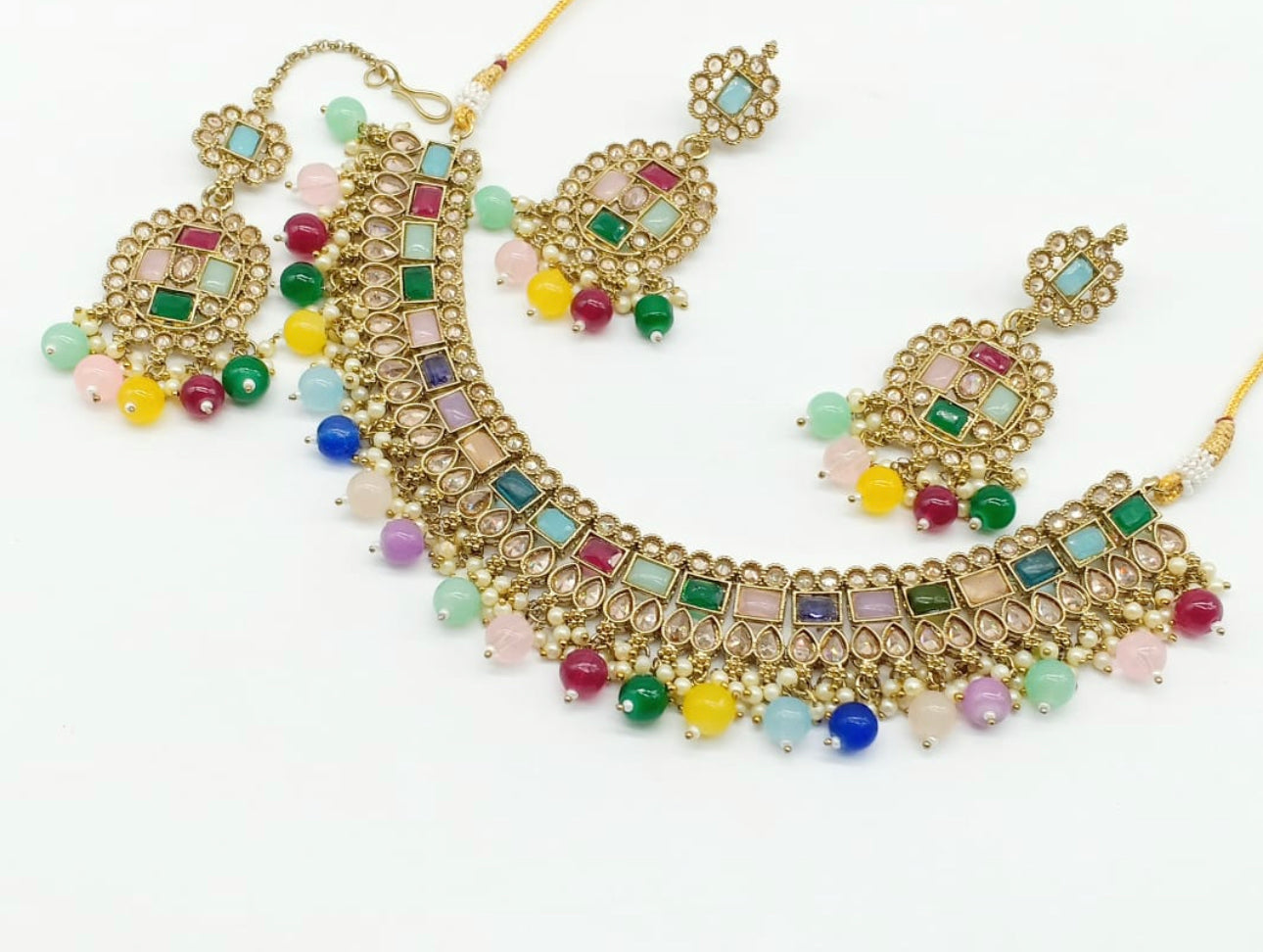 Beautiful and super lightweight choker set in reverse Polki.
