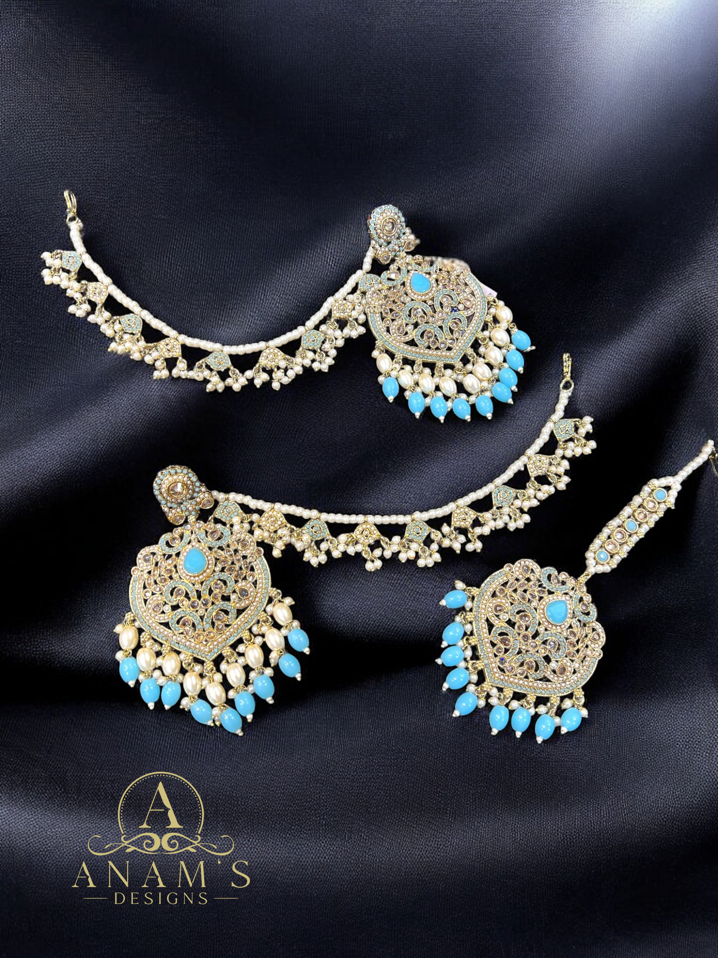 Beautifully designed Big Sahara Earrings Tikka Set with extremely lightweight.